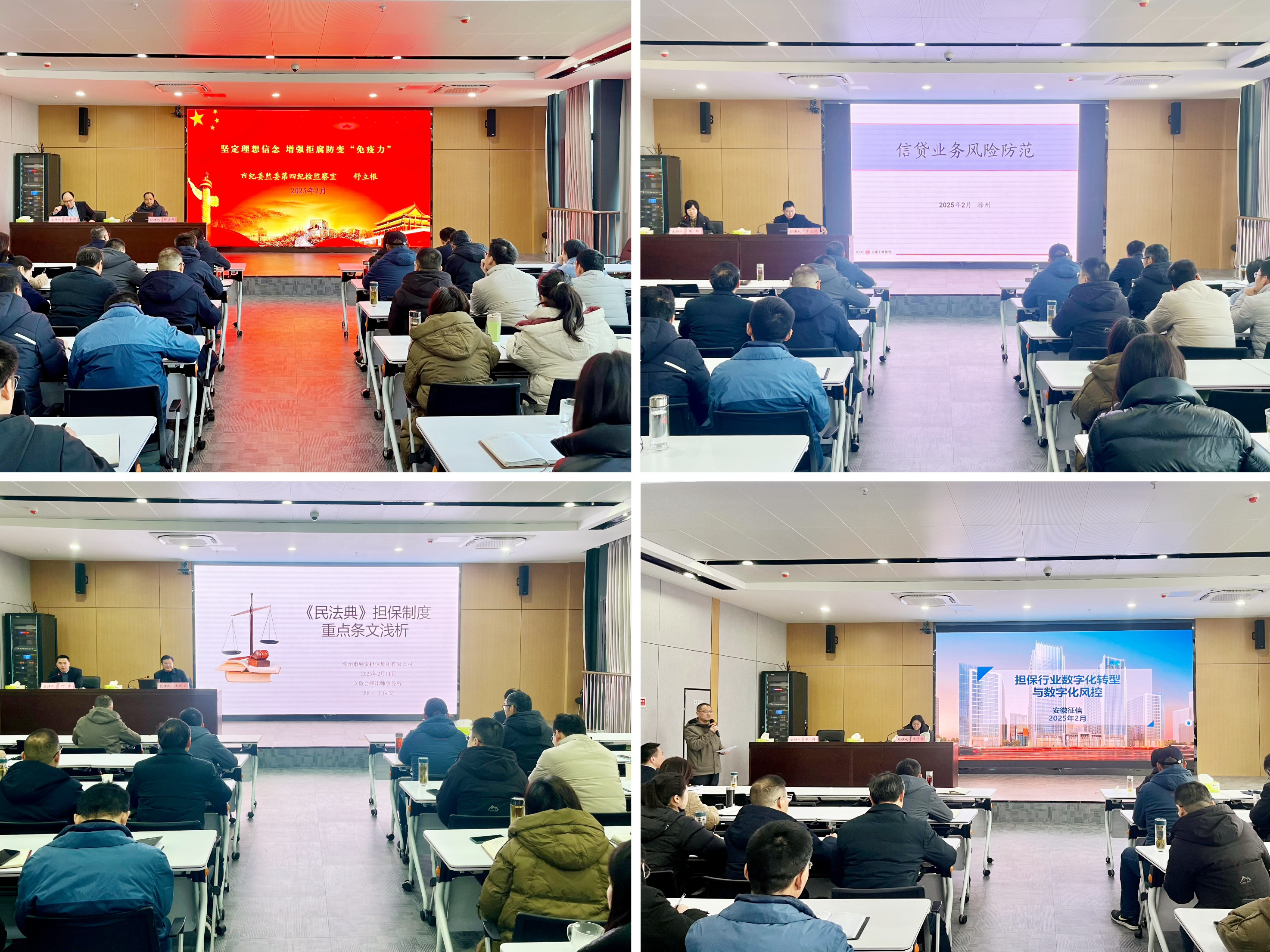 夯實風控基礎(chǔ),筑牢合規(guī)防線。特邀工商銀行滁州分行信貸專家李文順作《信貸業(yè)務(wù)風險防范》專題培訓,系統(tǒng)解析了銀行業(yè)信貸風險演變規(guī)律及防控體系,為擔保業(yè)務(wù)全流程風險防控要點及舉措提供了優(yōu)化建議,切實提升了全員對預(yù)見、預(yù)防、總結(jié)業(yè)務(wù)風險的能力水平。會峰律師事務(wù)所王保安律師以《民法典擔保制度重點條文淺析》為題,重點對“物權(quán)法”中涉及擔保抵押業(yè)務(wù)的法條進行了細致解讀,并深入擔保業(yè)務(wù)場景以案釋法,幫助全體職工研判形勢變化,識別防范新法律風險。